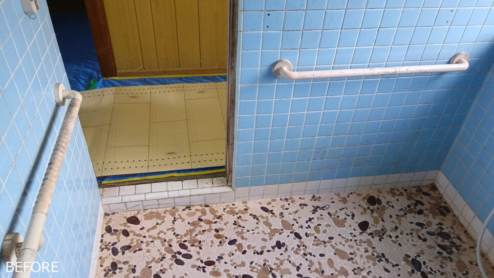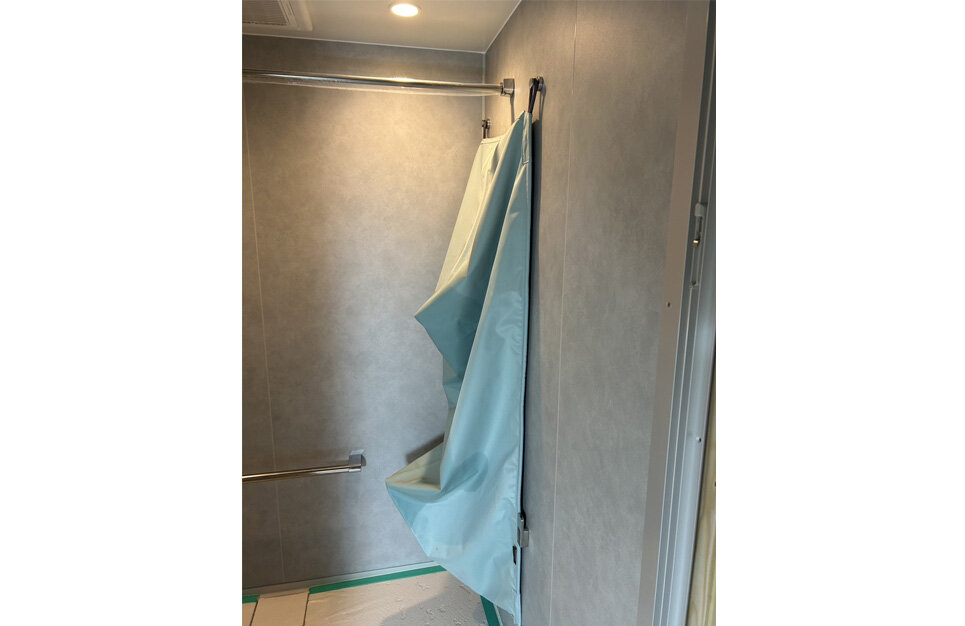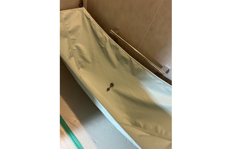 現状の在来浴室の浴槽は跨ぎの高さは低いが浴槽の底は洗い場よりも低いので浴槽に入る時は落ちるような感じで危険だったのでユニットバスへの取替を考えて見に行ったが跨ぎの高さが今よりも高いので何かいい商品が無いかと調べた所、バストープは跨ぎの高さが低く、布の浴槽なので滑り込むように浴槽に入れると思うので施工を考えたそうです。