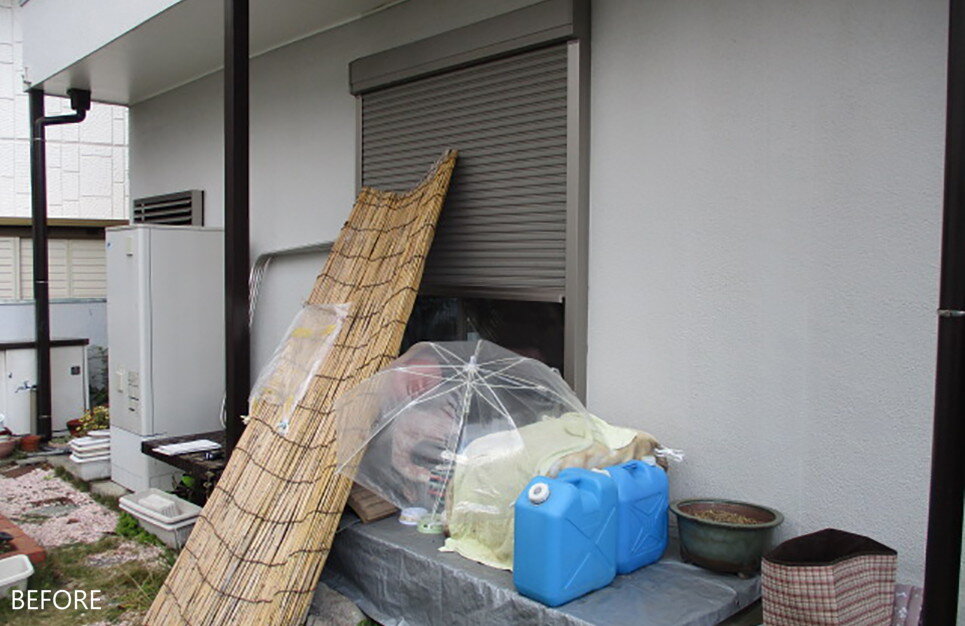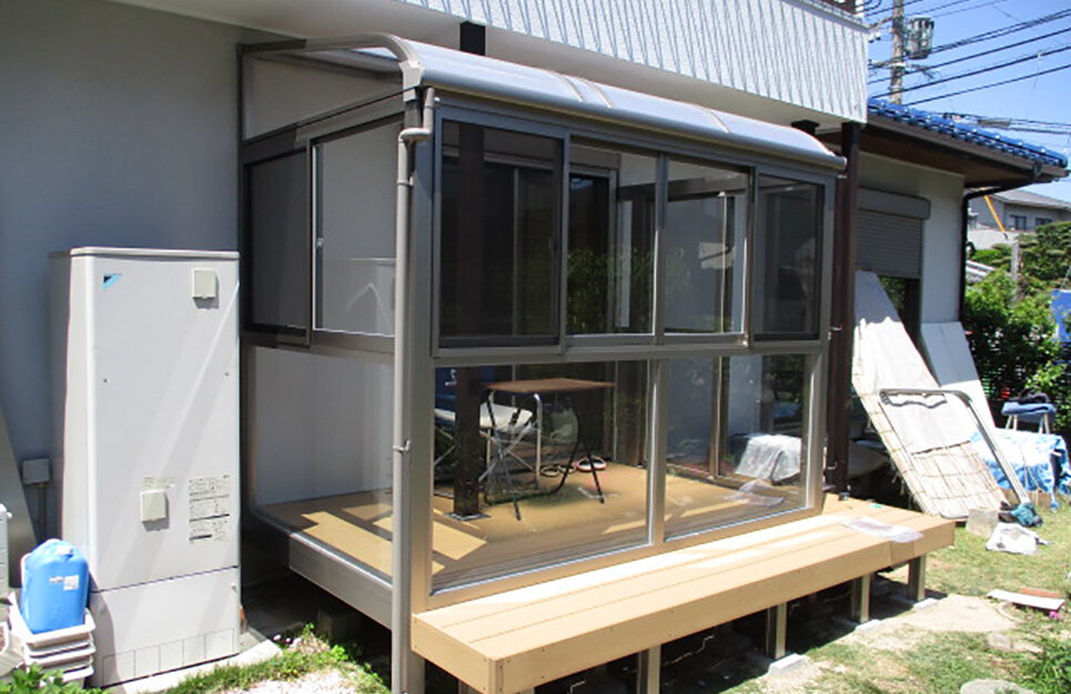 LIXIL福岡ショールームへご来場されて、お洗濯物を2階のバルコニーまで持って上がるのが辛くなってきたので 1階の和室の前にサンルームを設置したいとのことでした。