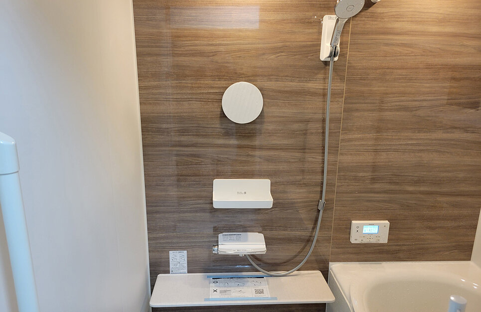 カウンターは外して洗うことができ、折りたたんで洗い場を広く使うことも可能です。また、ミラー・収納棚・シャワーフックはマグネットアイテムの為、簡単に取付け取外しができ、まる洗いができます。取付位置もお好みに合わせて設置ができます。シャワーヘッドはエコアクアシャワーで、空気を含んだ大粒の水滴が心地よい超節水シャワーです。水滴に空気を含ませることで、ボリュームのある浴び心地を実現しています。