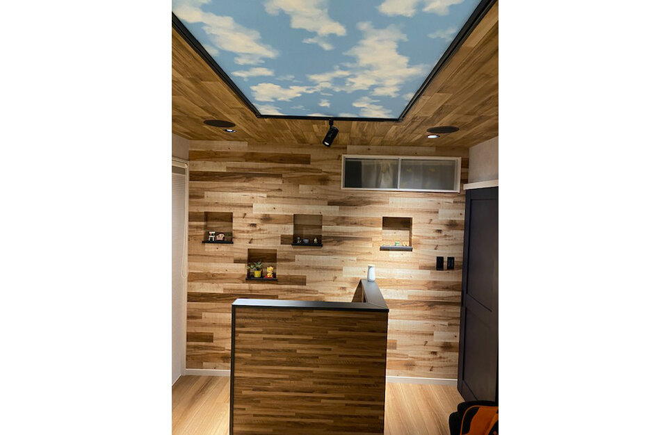 和室を洋風にする為に、天井・壁・床全てを造作しなおし、趣味の空間をもうける為に、スクリーンの大きさ等のヒアリングを重視した。